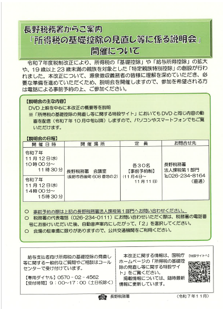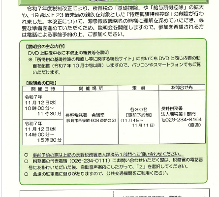 <お申込み・問い合わせ>長野税務署 法人課税第1部門 TEL026-234-8164
